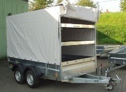 Unsere Planengestelle bestehen aus verschraubtem Vierkantrohr, die Seitenbretter sind aus Aluminium oder Holz, die Plane ist durch Drehösen rundum schnell zu öffnen.